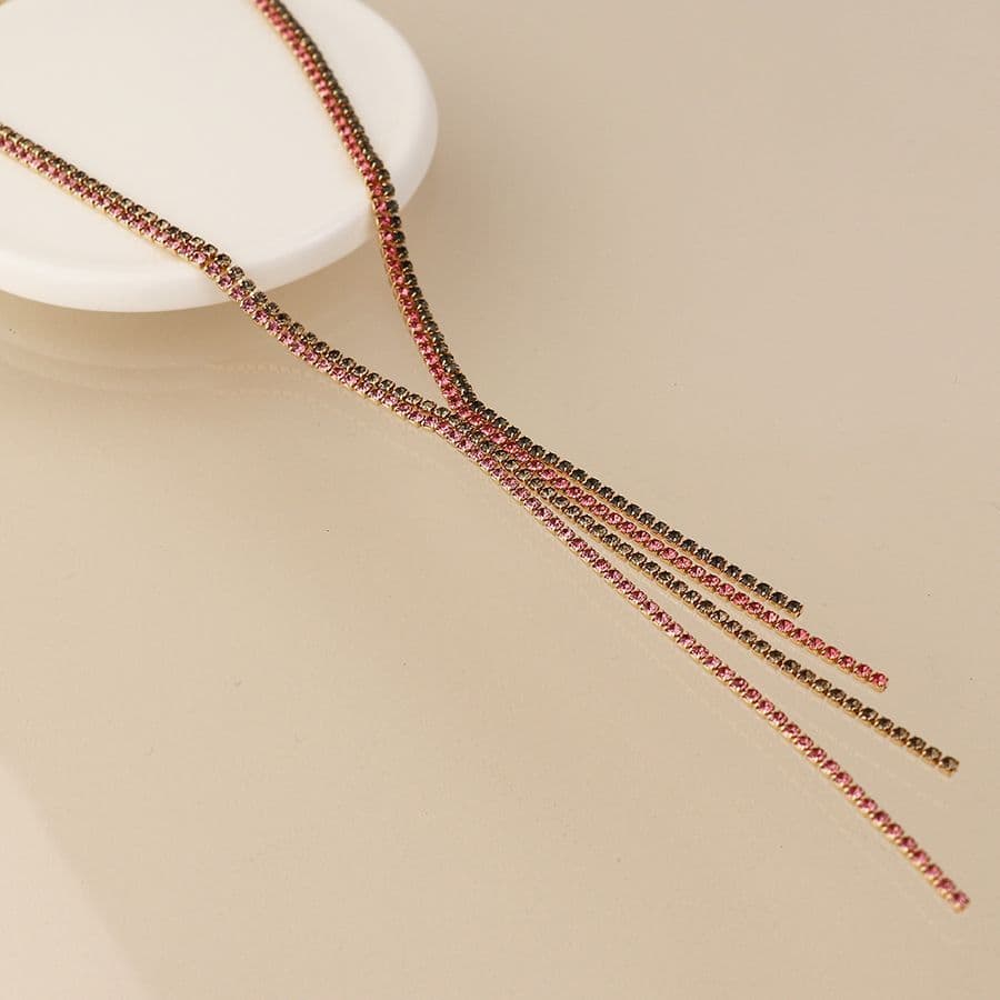 BLACK AND PINK MIX CRYSTAL LARIAT NECKLACE