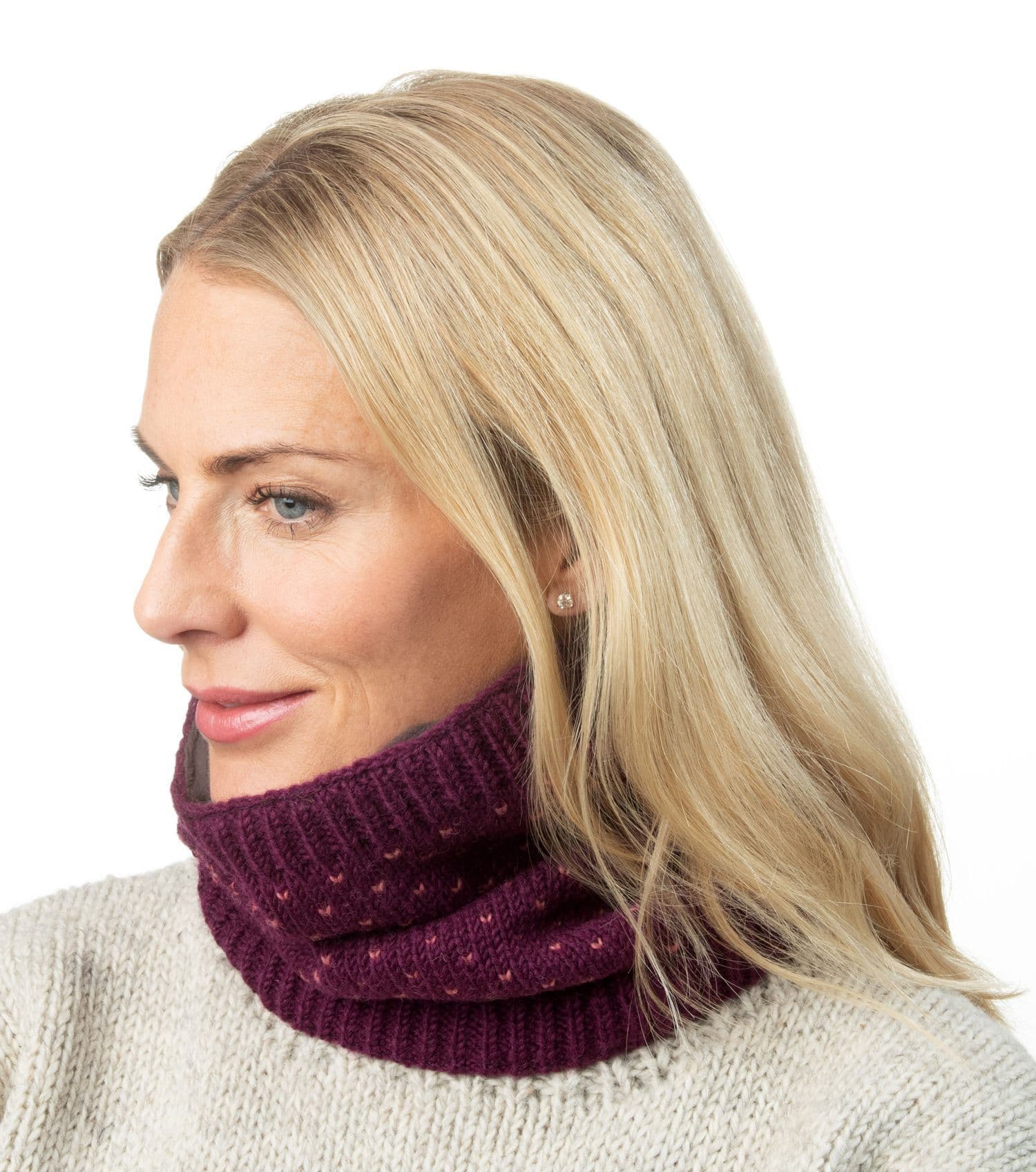 FLEECE LINED TICK SNOOD IN DEEP BERRY