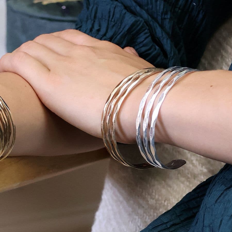 GOLDEN WORN HAMMERED TRIPLE STRAND BANGLE
