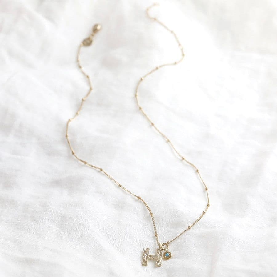 Treat someone special to one of our gorgeous hammered initial necklaces. Be it your girlfriend, sister or best friend, she'll love this stylish piece of initial jewellery, complete with a tiny crystal gem charm linked alongside the letter pendant. This necklace is made of 18ct gold plated brass and features a delicate satellite chain, lobster clasp fastening, and extender links.