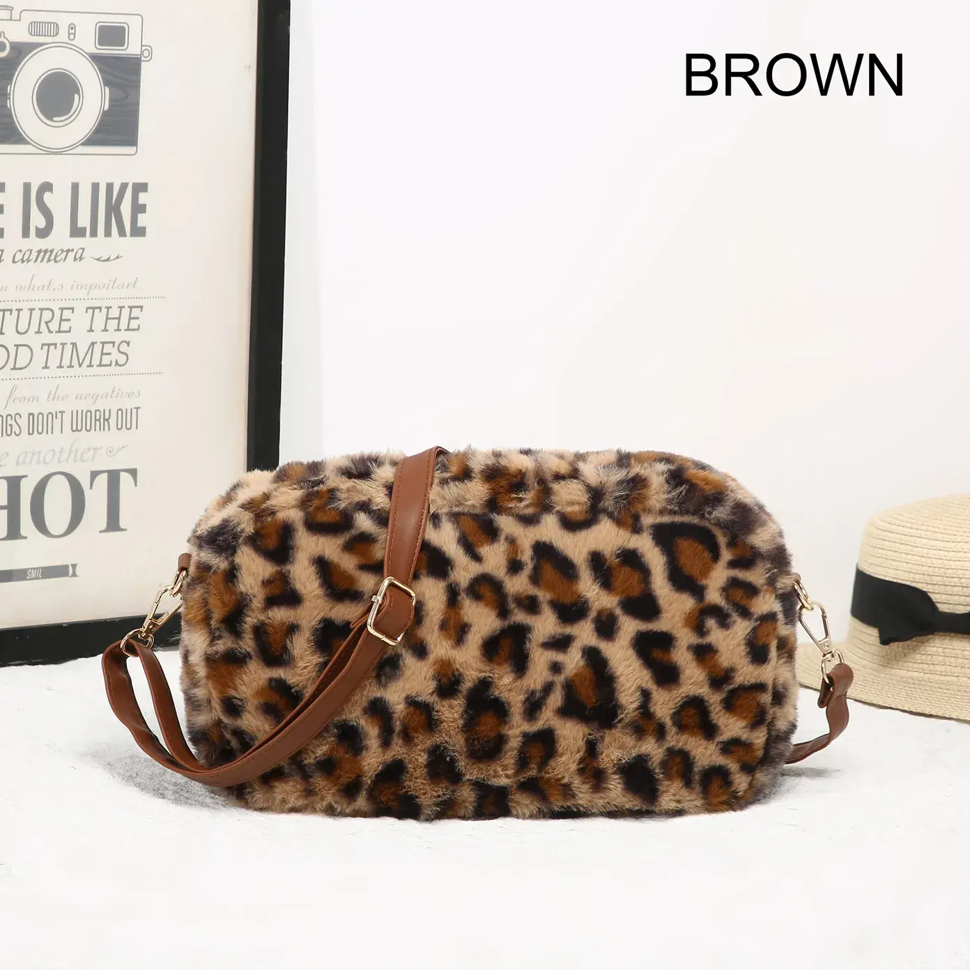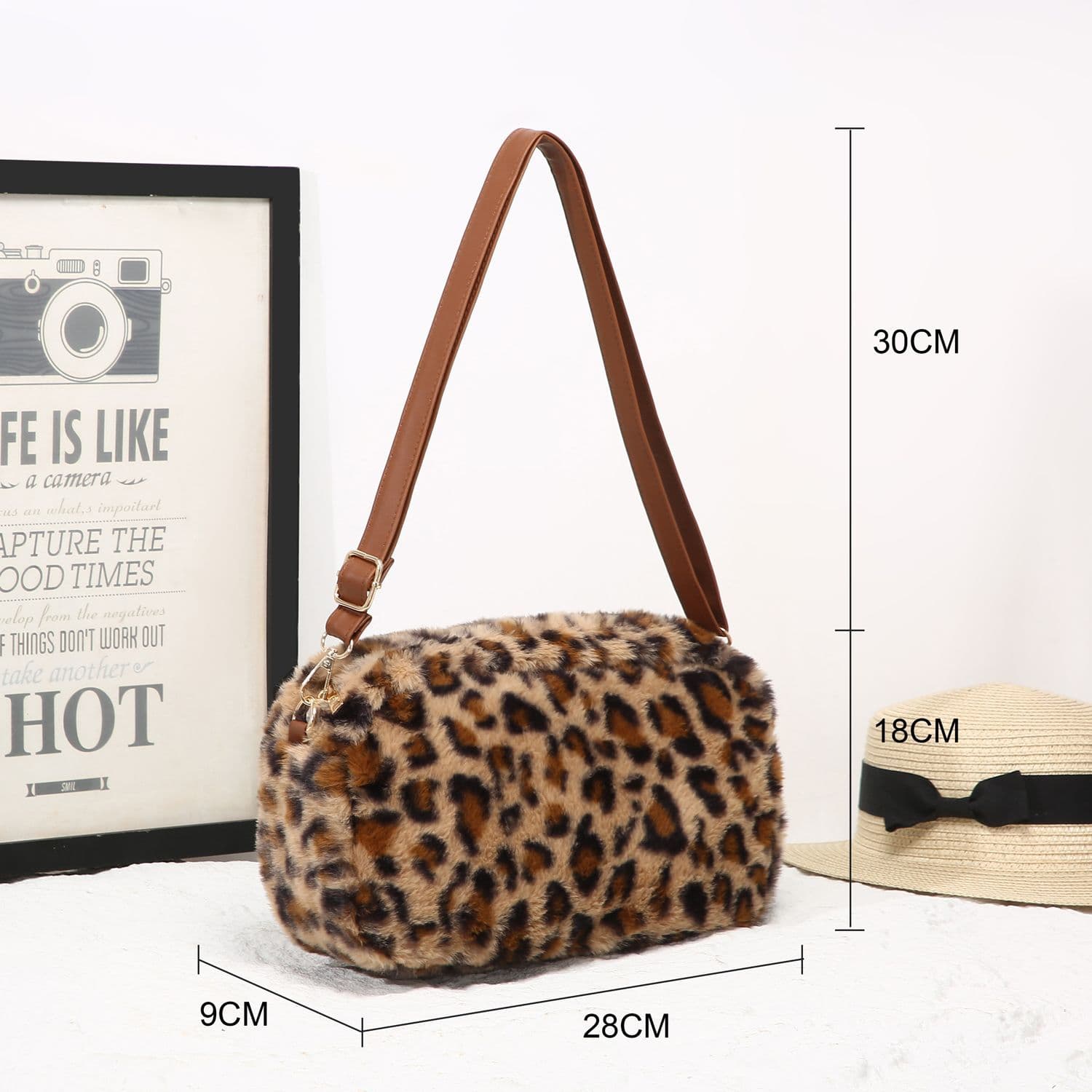 LEOPARD PRINT FAUX FUR CROSSBODY BAG