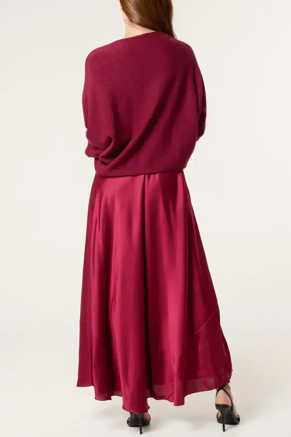 Open Knit Top & Satin Dress Set