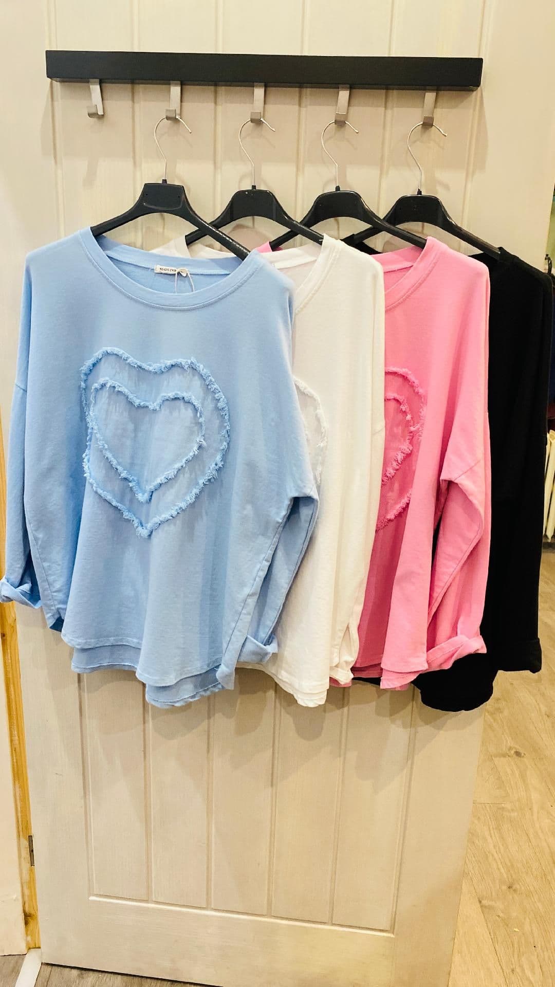 OVERSIZED HEART DETAIL COTTON TOP BLUE