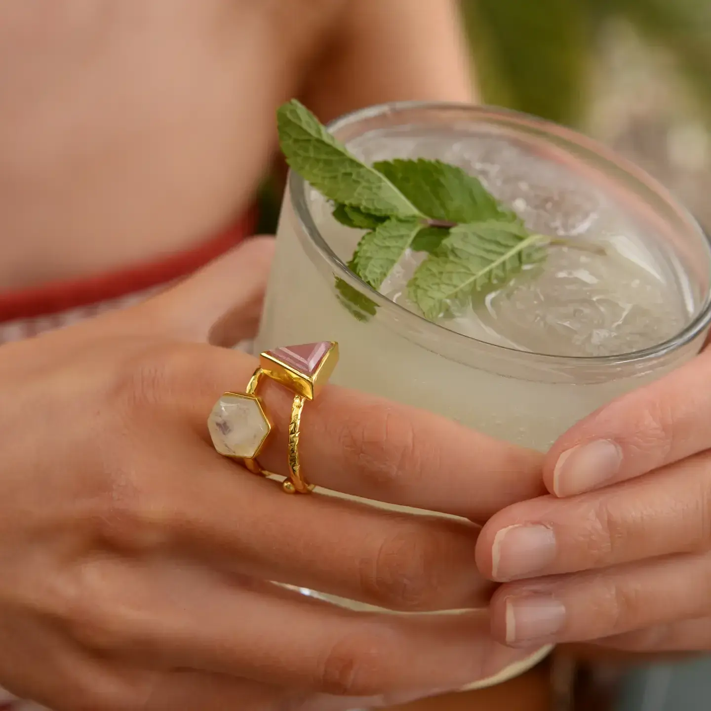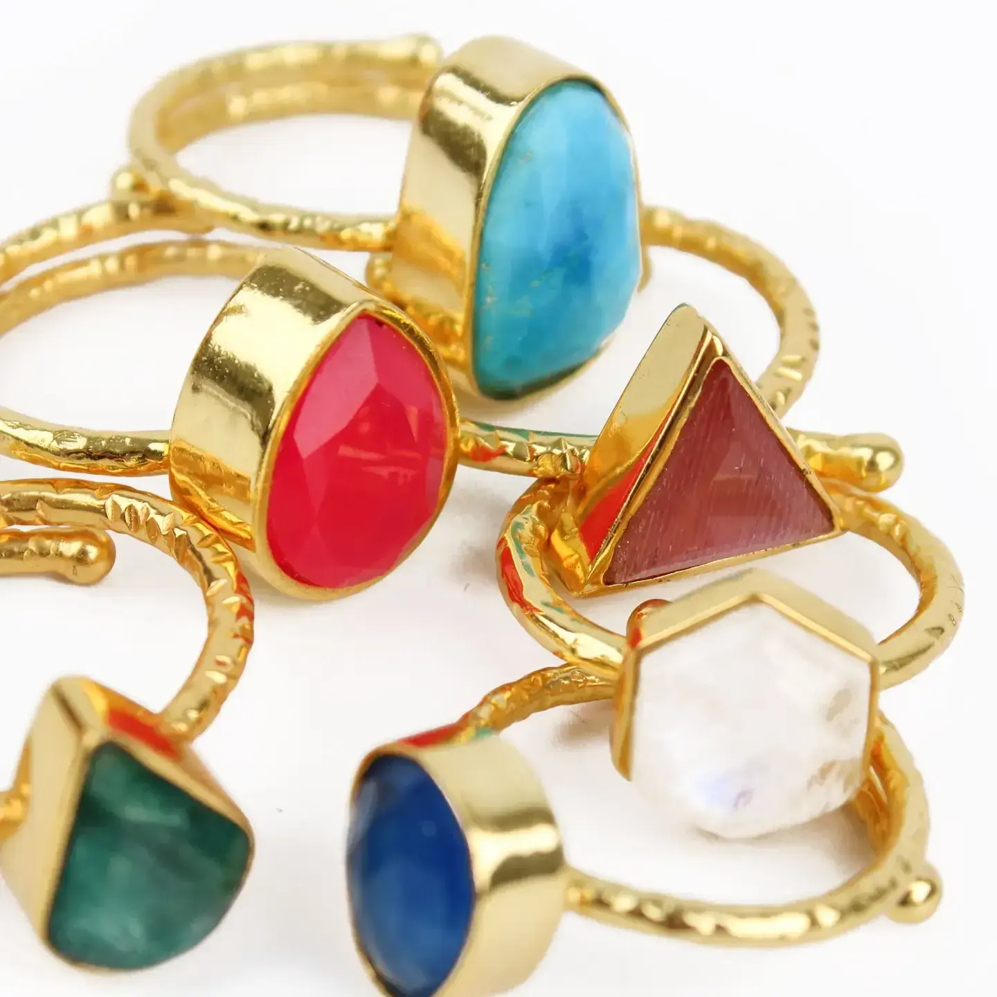 Semi-precious rings, designed with an adjustable fit.