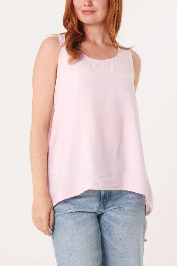 SLEEVELESS SCOOP NECK TOP W/ BACK BUTTONS
