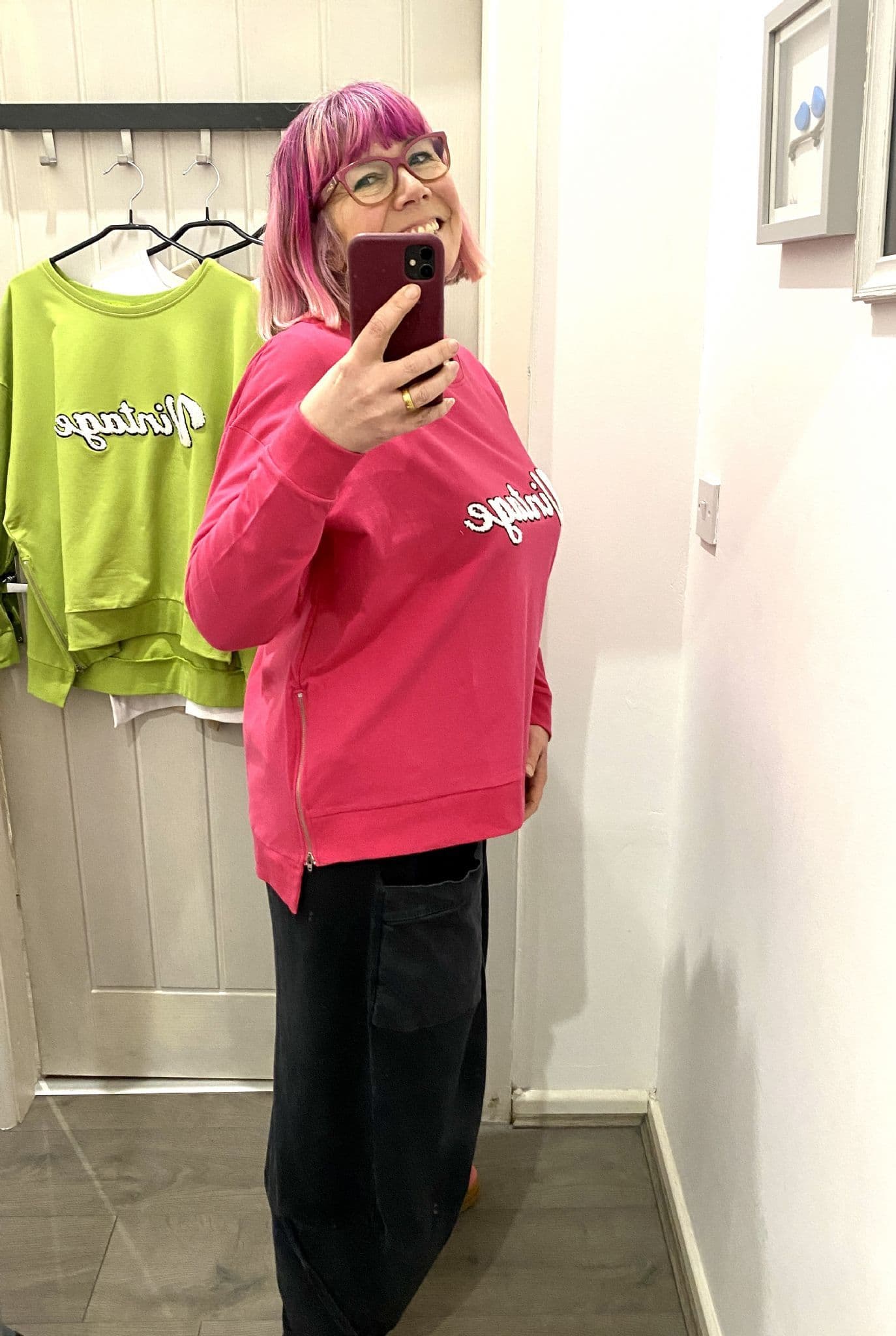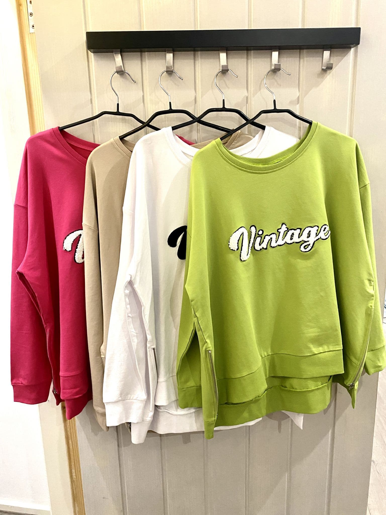 Our crew neck sweatshirt is crafted from a super soft lightweight cotton. With a cute Vintage text embellished motif. Featuring functioning side zips to allow for a roomy fit on the hips, this style ensures maximum comfort and a casual on trend look. Pair with your favourite denims and trainers for a daytime outfit, or chuck on over your gym leggings on those off duty days.