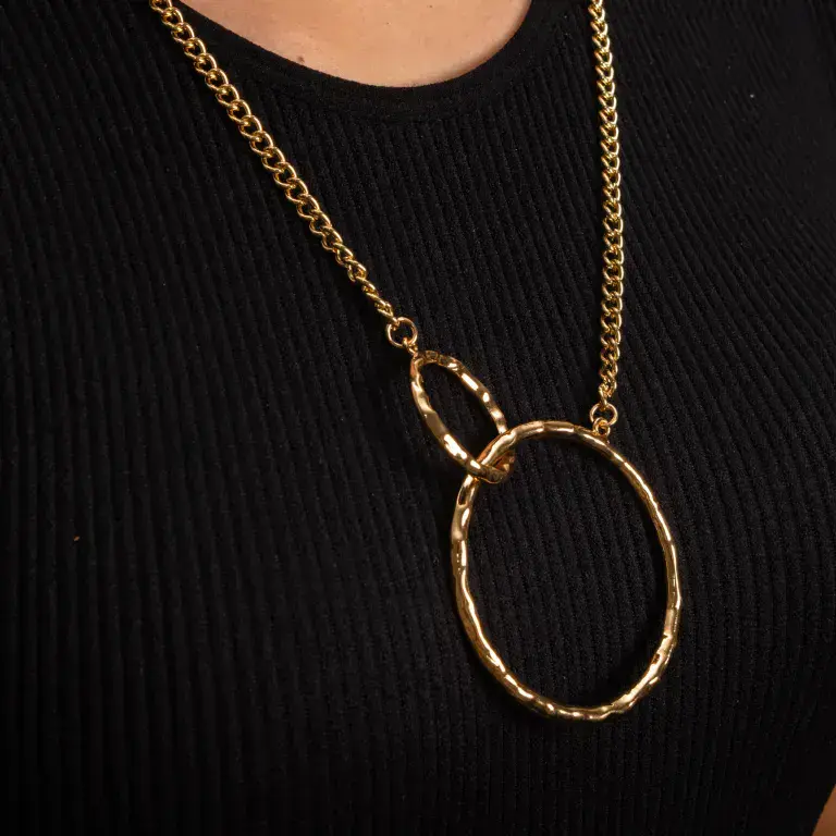 STATEMENT DOUBLE CIRCLE NECKLACE IN GOLD