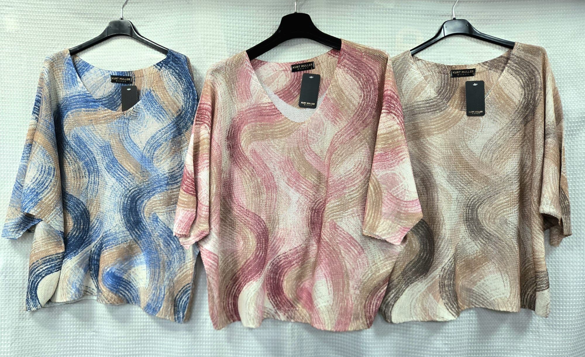 Best selling mesh knit in new prints. Trendy and stylish. Cool, comfy, and casual. Team with our jeans, scuba trousers, wide leg trousers or skirts. One size (sizes 10-18) UK Sold in any colour or quantity Made in Italy 65% polyester 35% viscose soft fabric